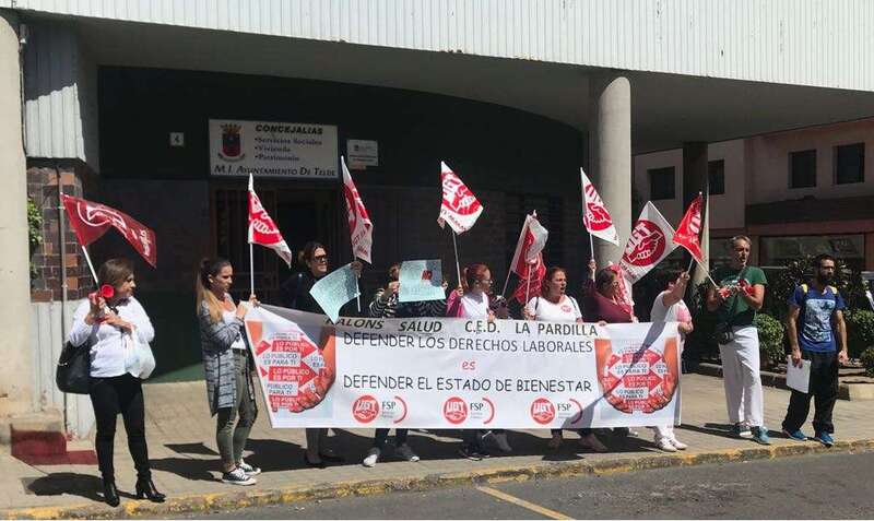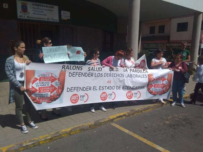 Telde.- Un grupo de trabajadores de Ralons Salud que atiende el Centro de Estancias Diurnas para enfermos de Alzheimer de La Pardilla se ha concentrado este lunes junto a la sede de la Concejalía de Servicios Sociales para protestar por el calvario que soportan desde hace más de un año, con retrasos continuos a la hora de cobrar sus salarios por parte de la empresa vinculada a Miguel Ángel Ramírez.