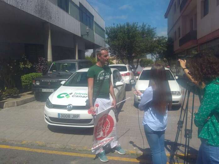 Los afectados, siete trabajadores que han convocado una huelga parcial que comenzaba este mismo lunes, han acudido al inmueble municipal de Alonso Quesada para protestar por su situación laboral.