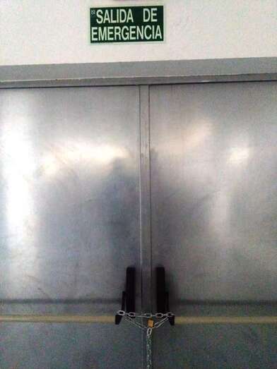 En este sentido, advierten de que las puertas de emergencia están bloqueadas por “cadenas y candados”, lo que supone un grave riesgo en caso de emergencia, y de que las puertas de evacuación no cumplen la normativa vigente.