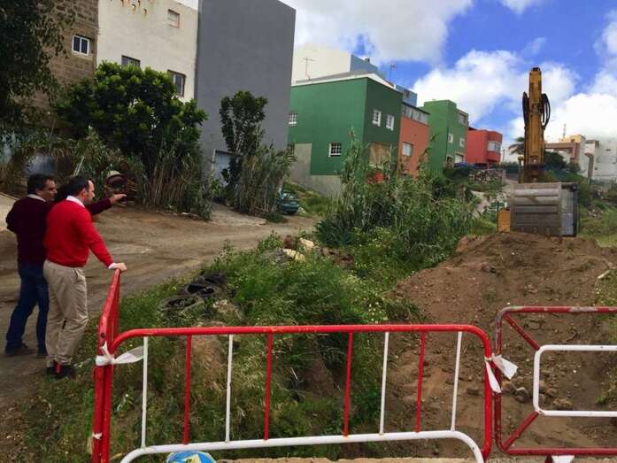 Con ayuda de una retroexcavadora, los operarios del departamento que comanda Eloy Santana han realizado un desmonte de la tierra en uno de los laterales de la infraestructura, habilitando así un cauce alternativo.