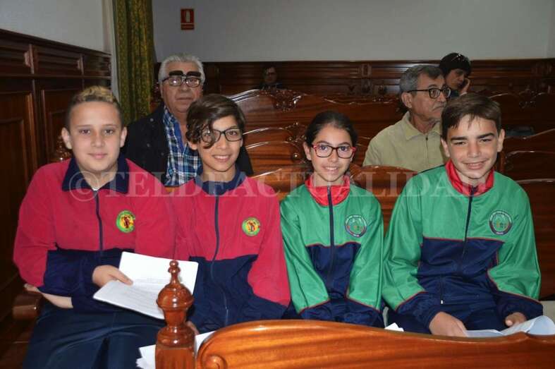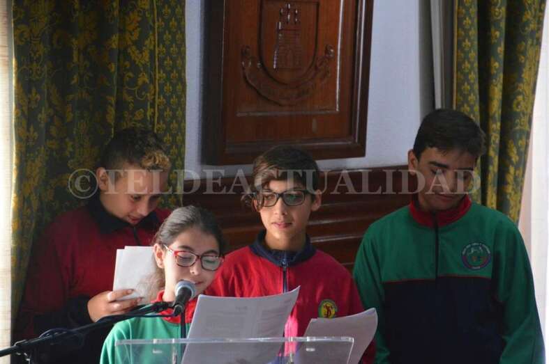 A continuación, cuatro alumnos de Sexto de Primaria (dos del colegio Saulo Torón y otros dos del CEIP Fernando León y Castillo) se encargaron de leer el manifiesto que la Concejalía de Solidaridad ha confeccionado con motivo de la celebración, el próximo 16 de abril, del Día Internacional por la Erradicación de la Esclavitud Infantil.