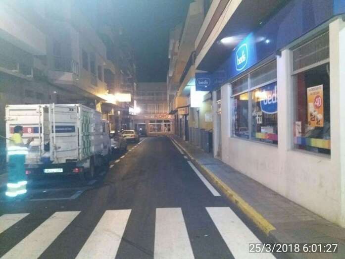 Telde.- El casco urbano de la ciudad dio la bienvenida este domingo al nuevo horario de verano con una limpieza a fondo del sector comercial de Los Llanos, donde anoche tuvo lugar con gran éxito de organización y asistencia de público el evento Telde cambia de hora.