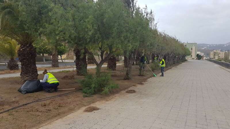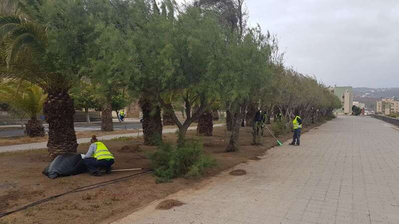 Telde.- Los 56 desempleados a los que el Ayuntamiento de Telde contrató de manera temporal en el marco del Plan Integral para el Valle de Jinámar ya trabajan en la mejora de los espacios verdes del barrio.