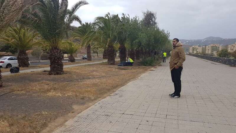 El concejal de Parques y Jardines, Abraham Santana (NC), que además es el edil del Distrito Jinámar, visitó este lunes los lugares en los que este personal está trabajando.