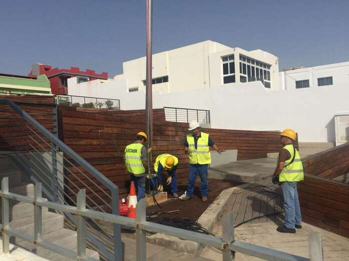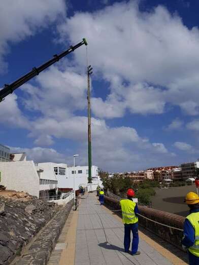 En su lugar, este miércoles se colocaron dos columnas de 8 metros de altura en acero inoxidable con cuatro proyectores de 400 vatios de potencia de tecnología led.