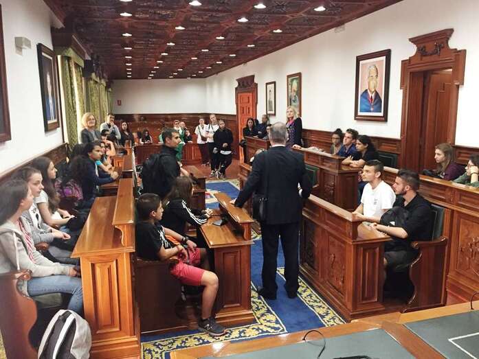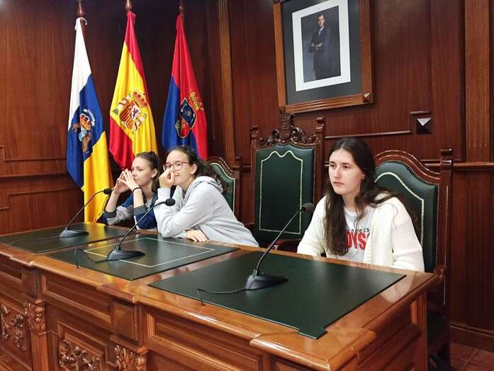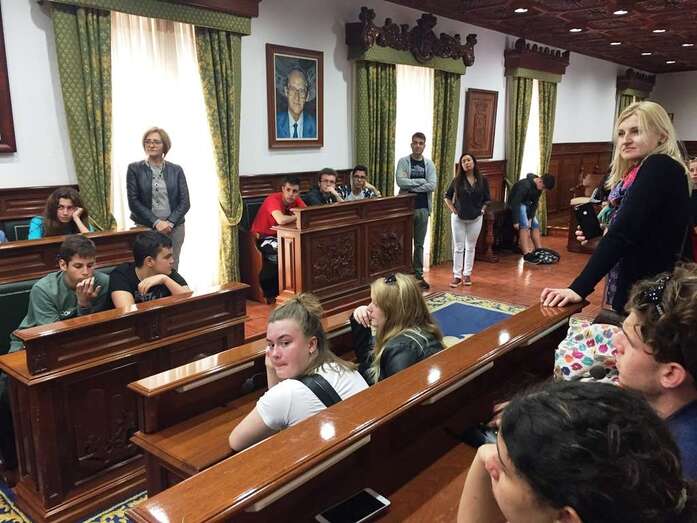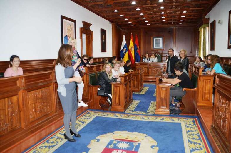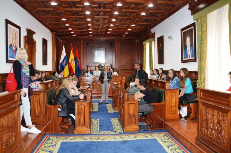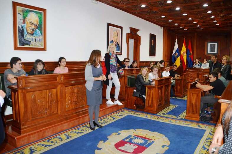 Telde.- Un grupo de 18 estudiantes de intercambio, con seis profesores, procedentes de Dinamarca, Polonia e Italia visitó este miércoles el casco histórico del municipio y el salón de Plenos de las Casas Consistoriales, donde fueron recibidos por la alcaldesa, Carmen Hernández, y la concejala de Cultura, Marta Hernández.