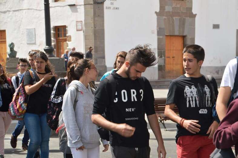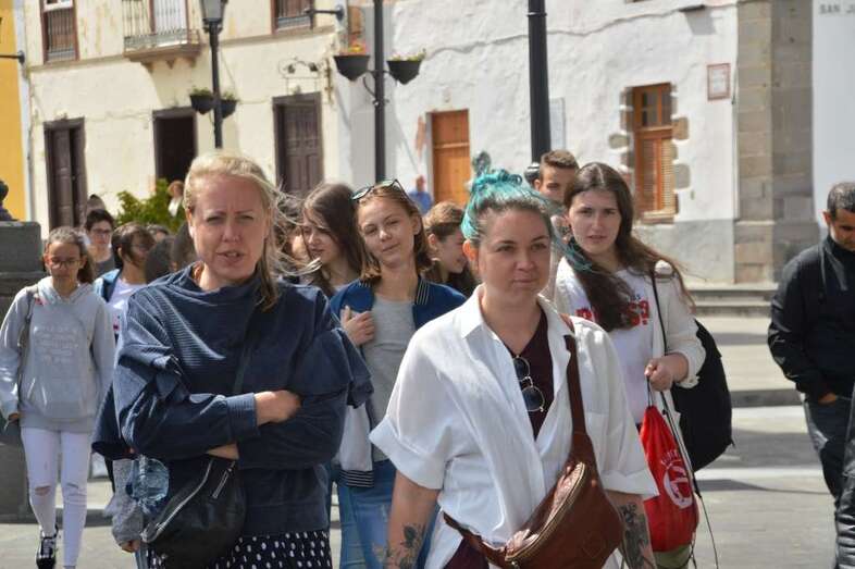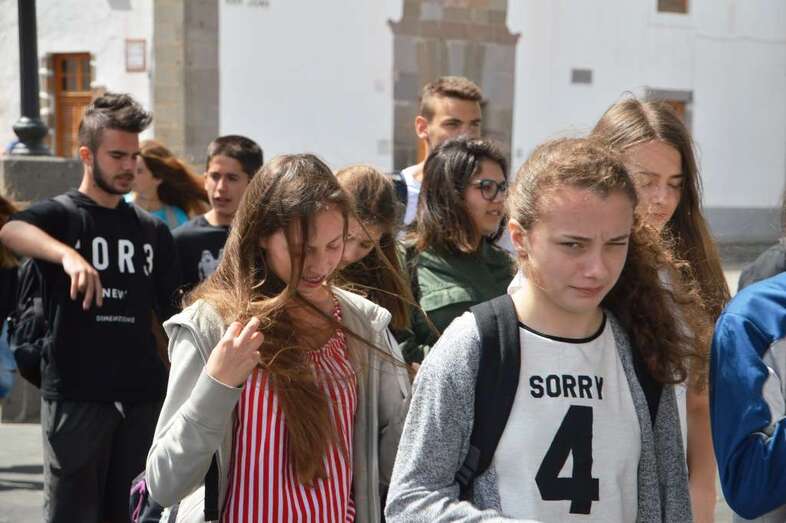 Estos alumnos, que participan en un intercambio con el IES Profesor Juan Pulido Castro en el marco del proyecto Eramus + KA2, estuvieron acompañados por compañeros y profesorado de su centro y por el cronista oficial de Telde, Antonio María González.