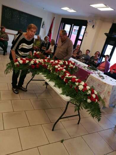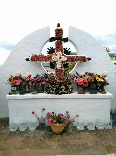 Colocación de un cruz de flores en el frontis del local vecinal de El Roque Azucarero (Foto TA) Colocación de un cruz de flores en el frontis del local vecinal de El Roque Azucarero (Foto TA)