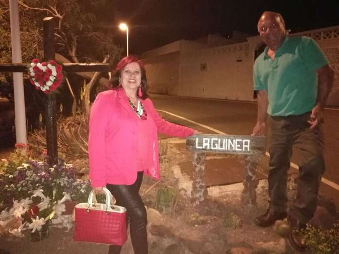 Los vecinos de Lomo Guinea celebraron este míercoles por primera vez  el Día de la Cruz con el enramado de una cruz y un brindis popular al que asistió la concejala de Participación Ciudadana, Saro Sosa Pulido (CC).