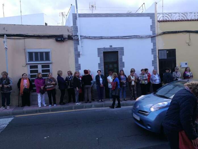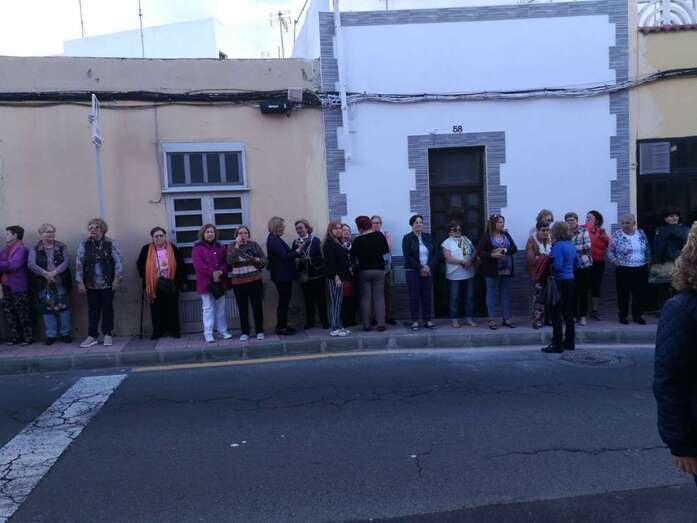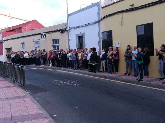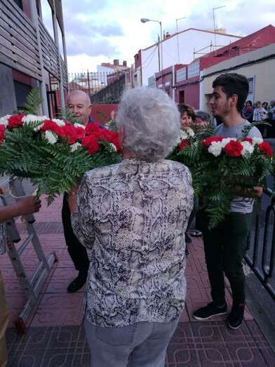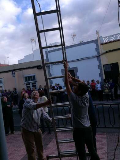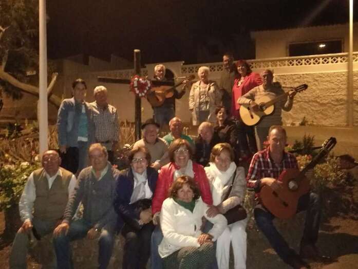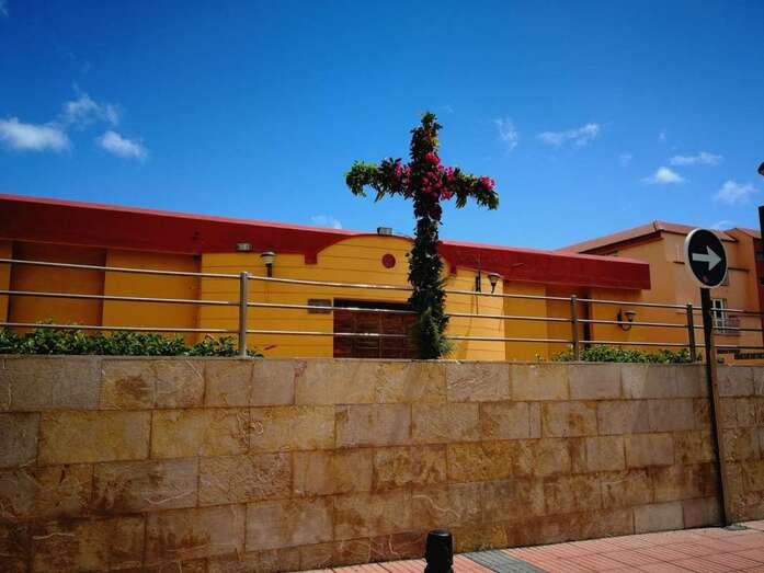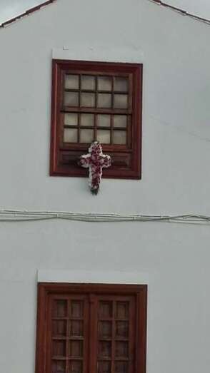 La asociación que preside la concejala Saro Sosa no ha querido pasa por alto el Día de la Santa Cruz que se celebra este jueves, 3 de mayo, y ayer por la tarde engalanó la fachada principal del inmueble vecinal de la calle de El Roque con una gran cruz, que fue subida en un acto que congregó a decenas de personas en esta estrecha vía de Los Llanos de Telde.