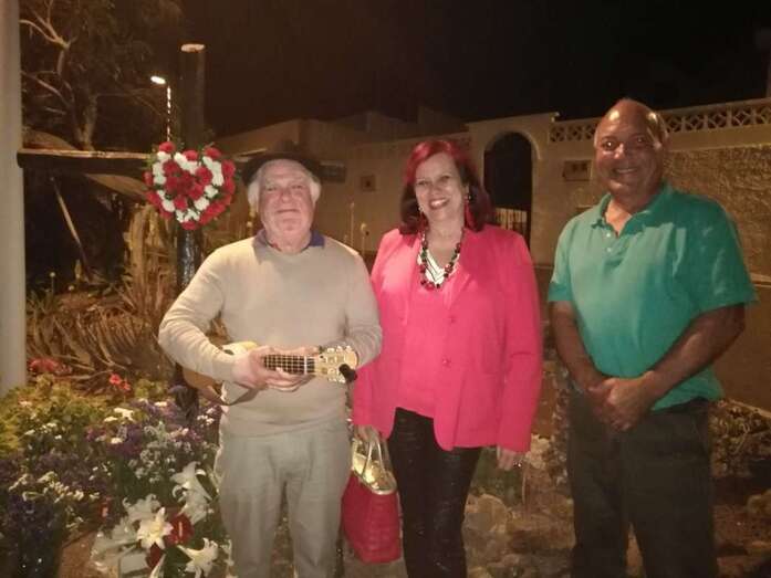 El evento comenzó en el interior del local social con unas palabras de Arnaldo Ojeda con las recordó la vieja costumbre de adornar los frontis de las casas con cruces diseñadas con flores por esta época del año. Hubo momento después para la lectura de poemas y la oración, antes de la subida de la Cruz, de gran significado religioso para los cristianos, para su fijación en la fachada del inmueble de dos plantas que da cobijo a El Roque Azucarero.