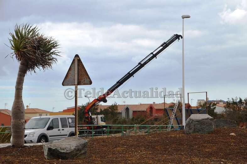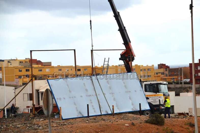 Estaba siendo colocada en un desvencijado soporte metálico próximo a la rotonda de El Drago