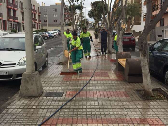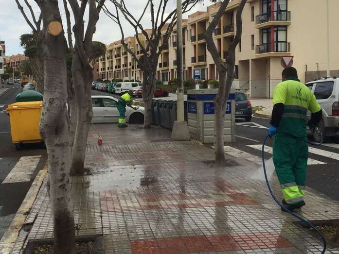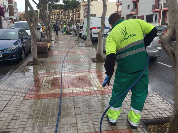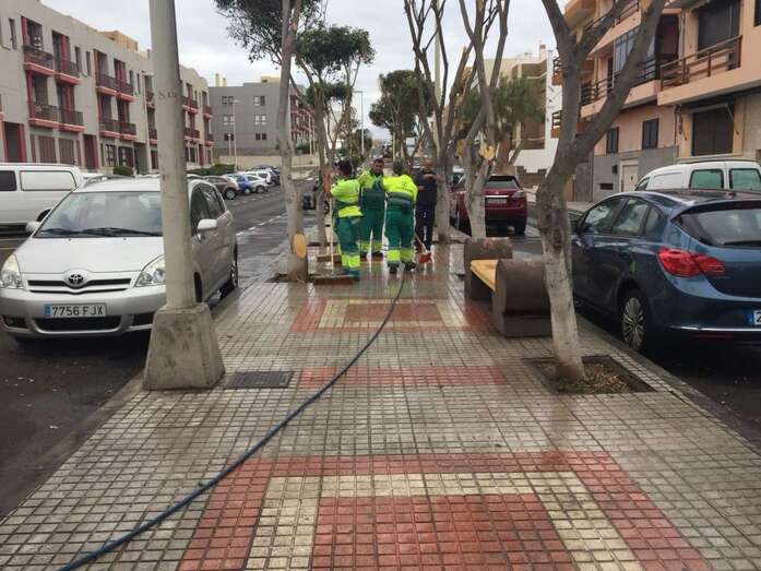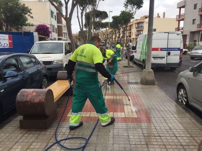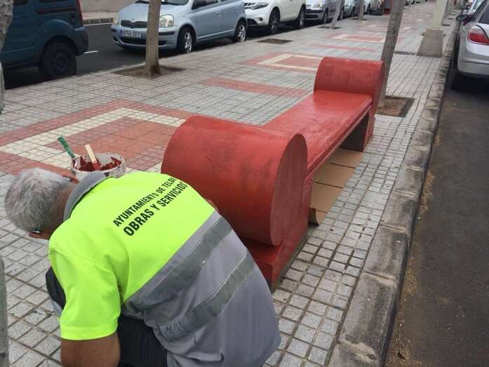 La actuación, acometida de manera conjunta por los departamentos de Limpieza y el de Servicios Municipales, ha incluido además un tratamiento cromático sobre los bancos de la parte central y peatonal de esta avenida, unos asientos que se encontraban ya muy deteriorados a consecuencia de los excrementos de las tórtolas, tal y como apuntaba este jueves el edil Eloy Santana.
