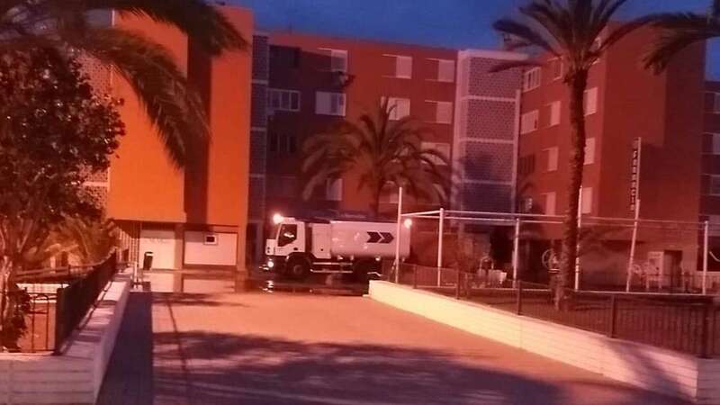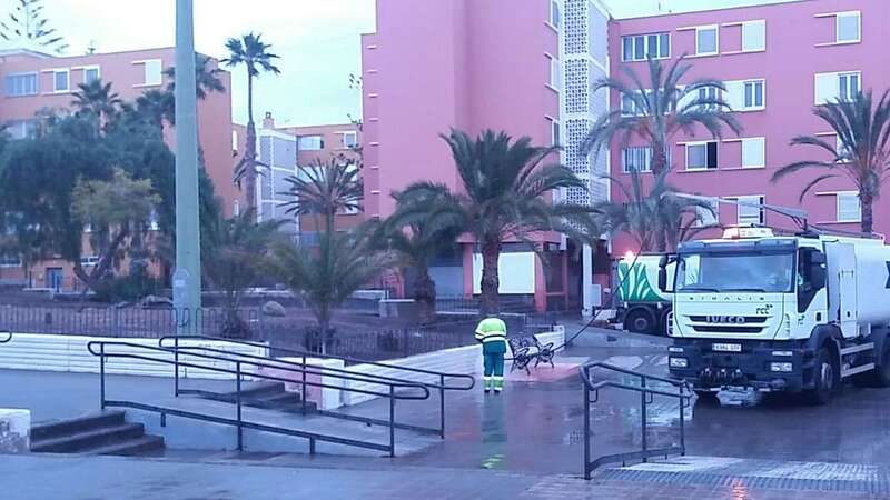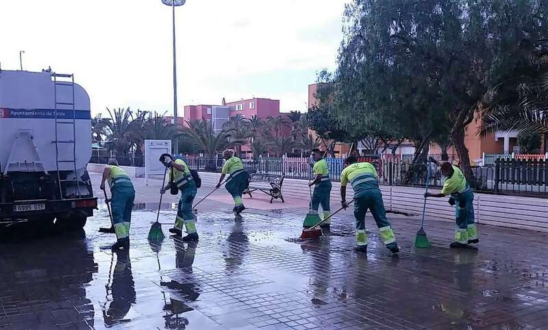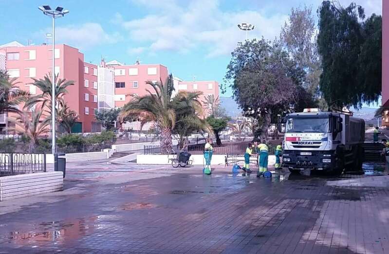 El concejal de Limpieza del Ayuntamiento de Telde, Eloy Santana (NC), detalla en una nota de prensa que el personal ha contado con la ayuda de dos baldeadoras, una máquina barredora y un camión cabstar para acometer esta tarea, que se desarrolló a primera horas de la mañana.