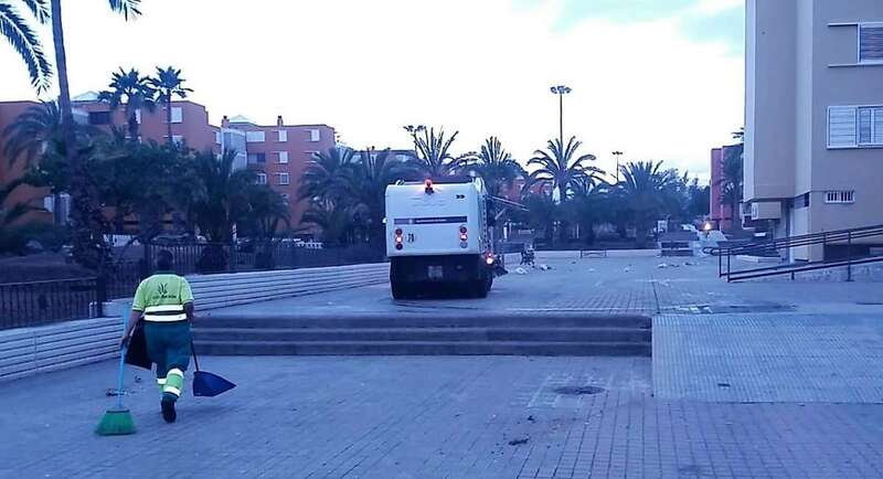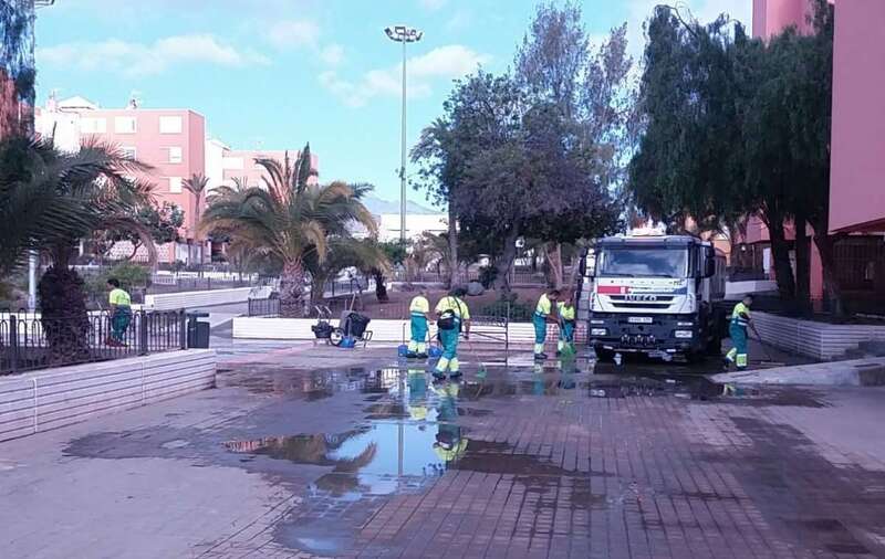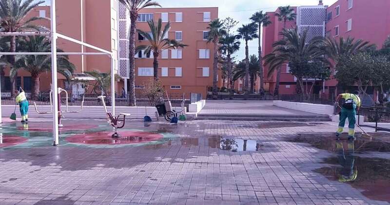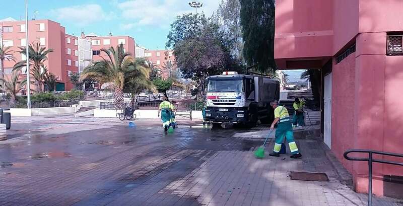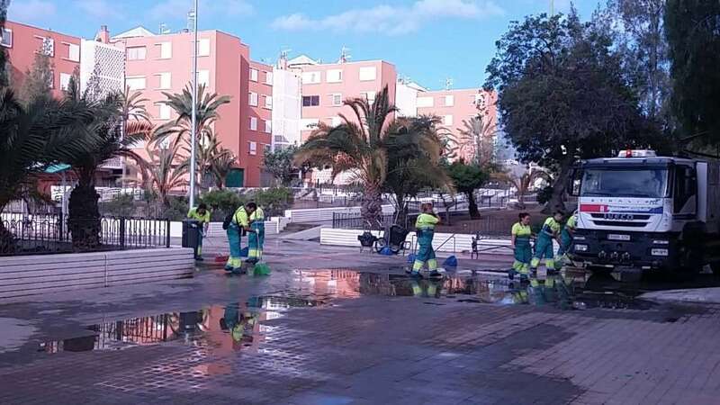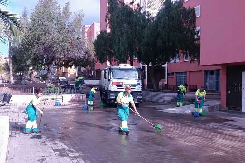 Telde.- Una cuadrilla de ocho operarios de la empresa Fomento de Construcciones y Contratas, adjudicataria del servicio, ha llevado a cabo este martes una limpieza de choque en el parque central del barrio teldense de Las Remudas.