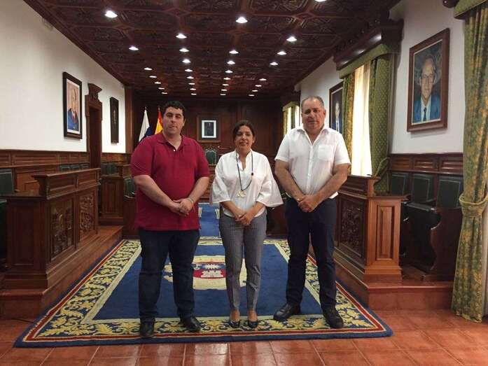 Telde.- La alcaldesa de Telde, Carmen Hernández, y el concejal de Seguridad, Transportes y Festejos, Juan Martel, recibieron este miércoles en las Casas Consistoriales a David García, alcalde de la Nules, en Castellón, y presidente nacional de CCD, que visita estos días el municipio.