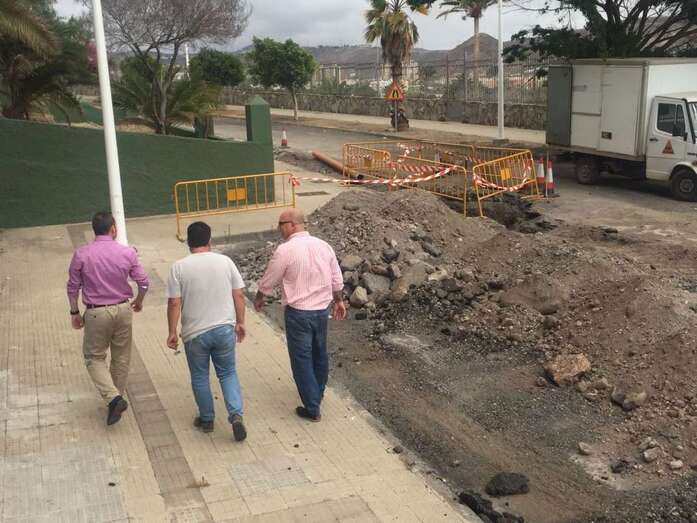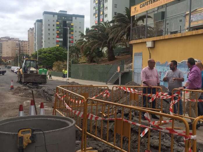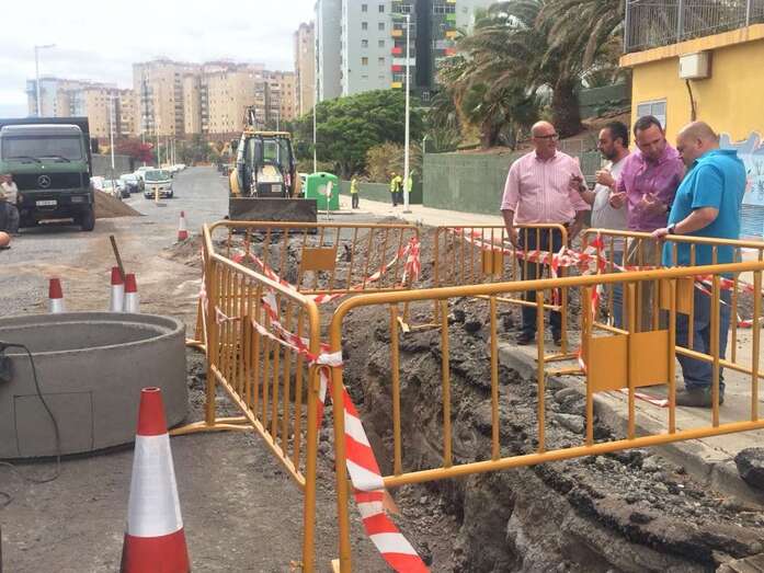 Los concejales de Aguas y Saneamiento y Vías y Obras, Agustín Arencibia y Eloy Santana (NC), visitaron este lunes esta obra que permitirá reducir el riesgo de inundaciones en épocas de lluvia y que forma parte de los proyectos que están financiados a través del FDCAN, señala el Gobierno local en una nota de prensa.
