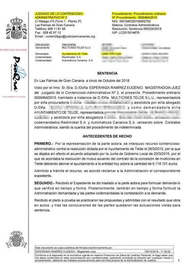 Sentencia íntegra que valida el acuerdo anulado por el Gobierno PP-CC en 2015