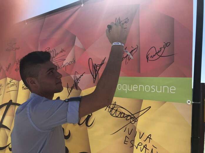 Alejandro Sánchez, presidente regional de NNGG, aprovechó la ocasión para dirigir unas palabras en favor de la “unidad” del país. "La bandera representa la unidad de España y los valores que nosotros defendemos; la libertad y el derecho que tenemos todos a seguir viviendo juntos”, reseñó.