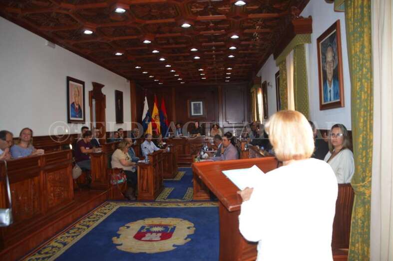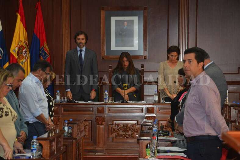 Al concluir la lectura, toda la Corporación, público y personal municipal presente en el Salón de Plenos de las Casas Consistoriales de San Juan se puso en pie para guardar un respetuoso minuto de silencio.