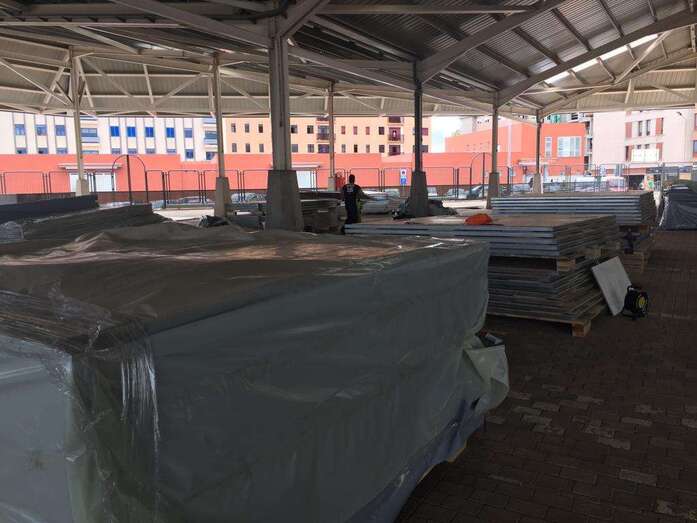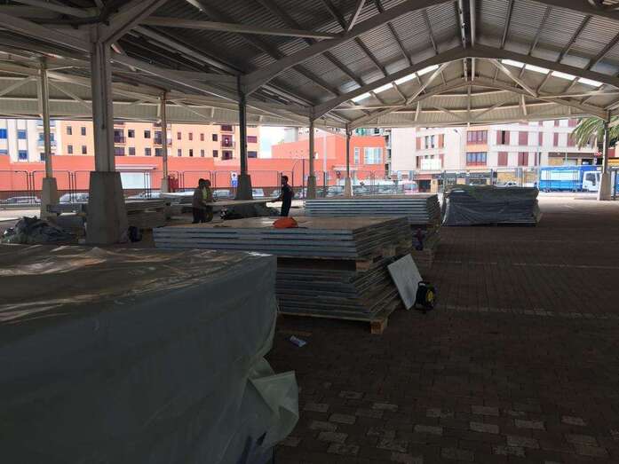 La adjudicataria dispone de un plazo de 13 días para la colocación en el recinto público de Narea de las casetas que albergarán provisionalmente a los puestos del Mercado Municipal mientras duren las obras de rehabilitación del recinto de abasto de la ciudad de la calle de Poeta Pablo Neruda.