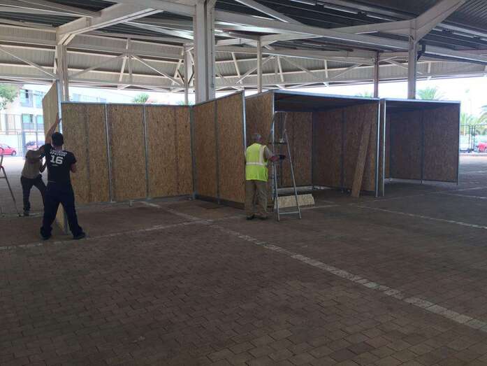 Telde.- Maderas Impregnadas para el Exterior, la empresa adjudicataria de las casetas provisionales para los puesteros del Mercado Municipal en el Área Polivalente de Narea, comenzó este viernes por la mañana su instalación.