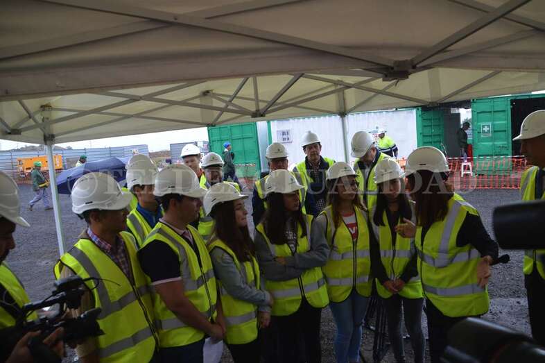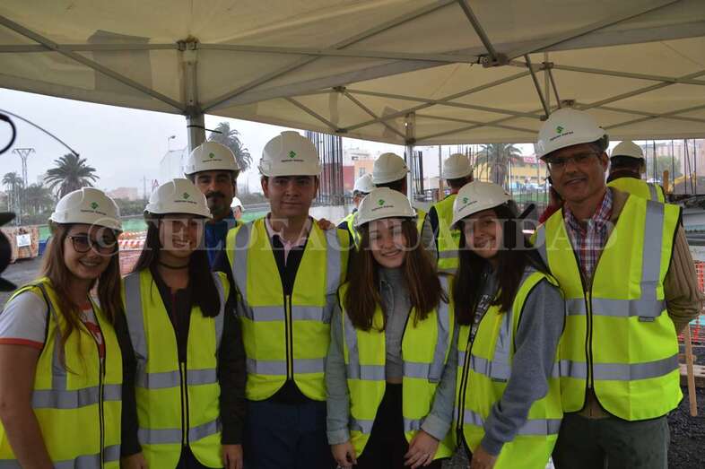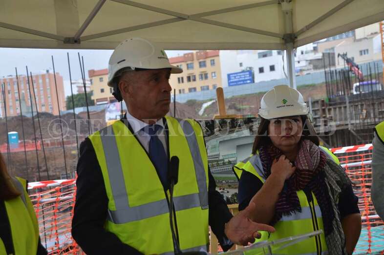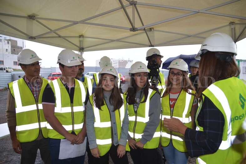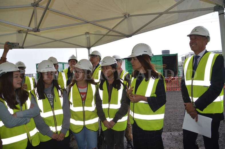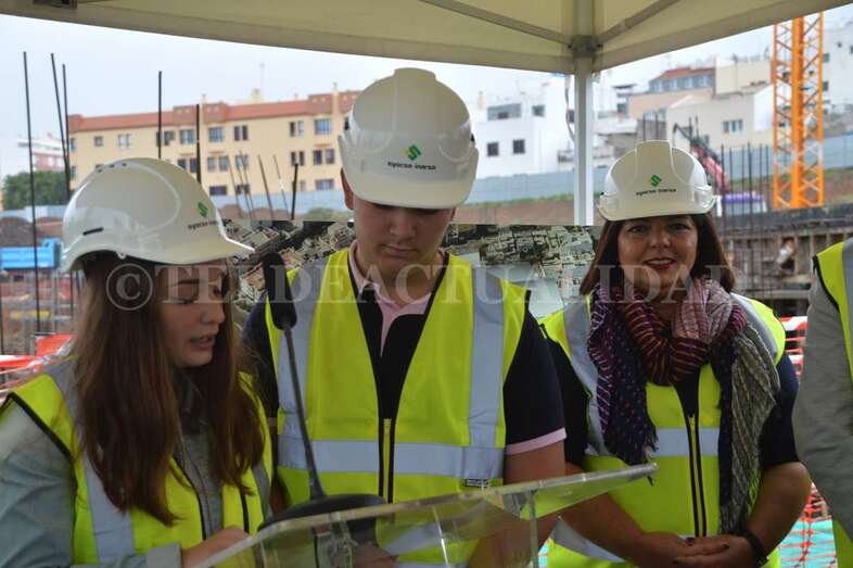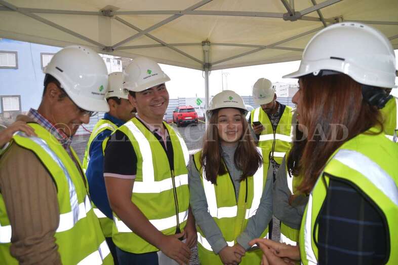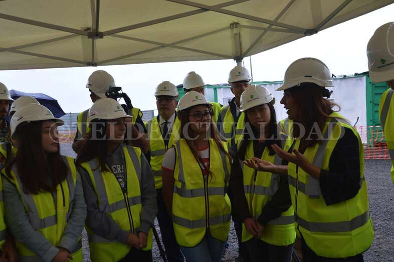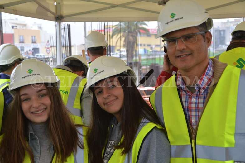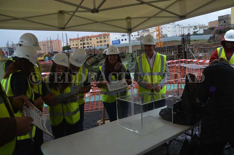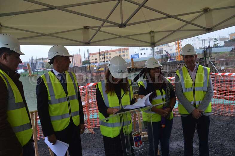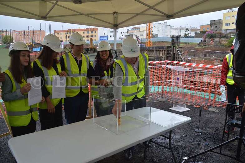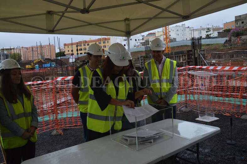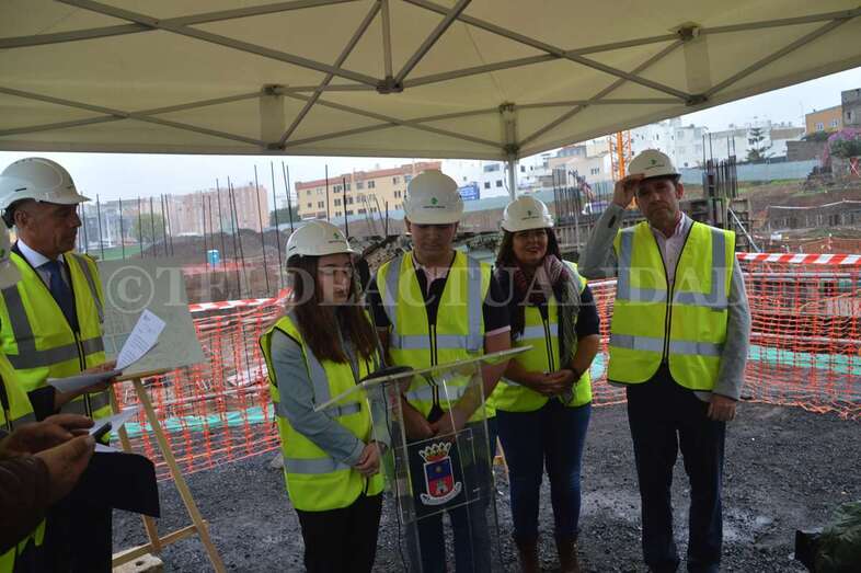 A media mañana, y bajo una pequeña carpa dada la lluvia que ha caído sobre Telde durante buena parte de la jornada de este lunes, se celebró este acto institucional en el que participó una comitiva municipal encabezada por la alcaldesa Carmen Hernández, alumnos de 4º de la ESO y 1º de Bachillerato del IES José Frugoni Pérez (La Rocha) y Florencio de la Rosa, consejero de delegado de Syocsa-Inarsa y representante de la UTE formada junto a iFitness Las Palmas Instalaciones Deportivas que se encargará de la construcción y explotación del complejo durante 40 años.