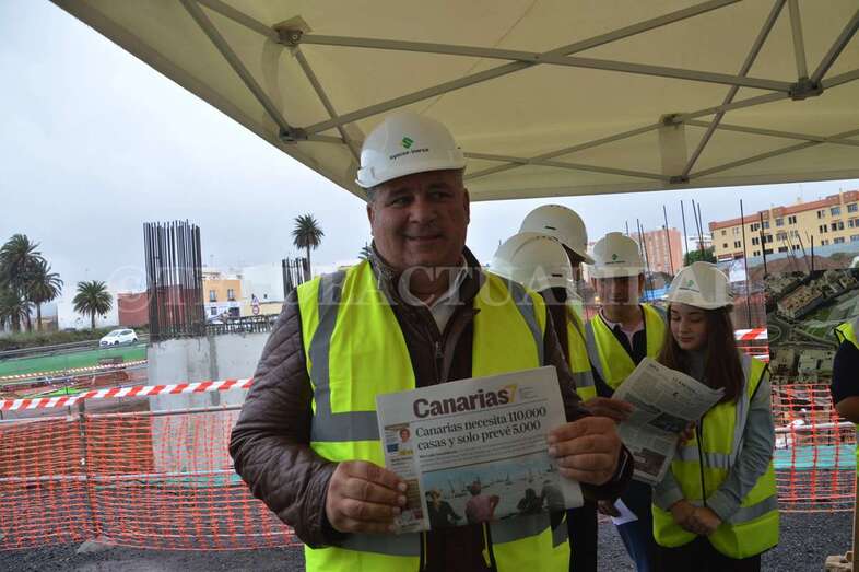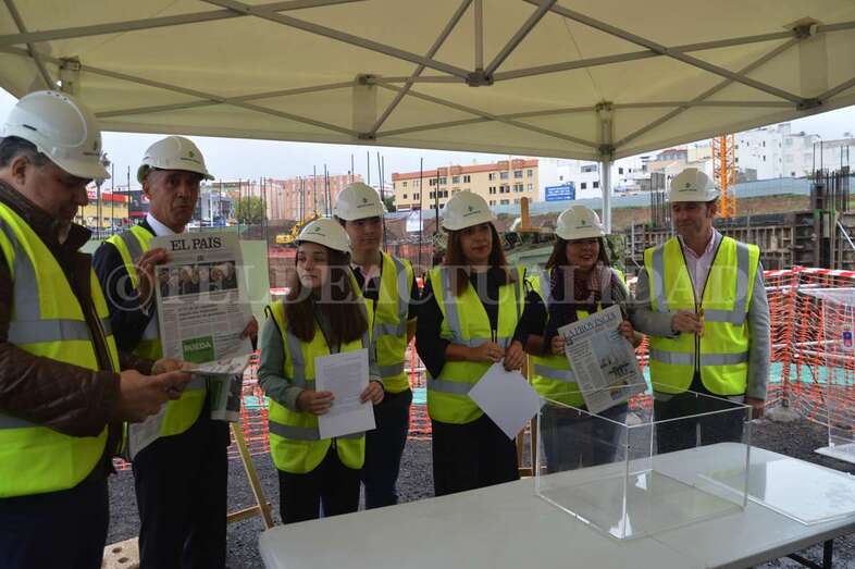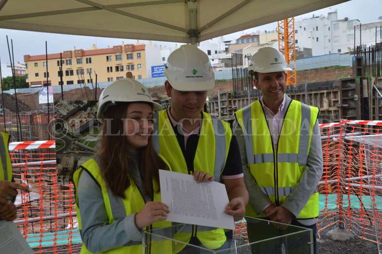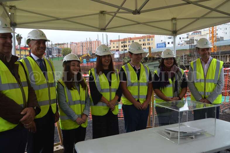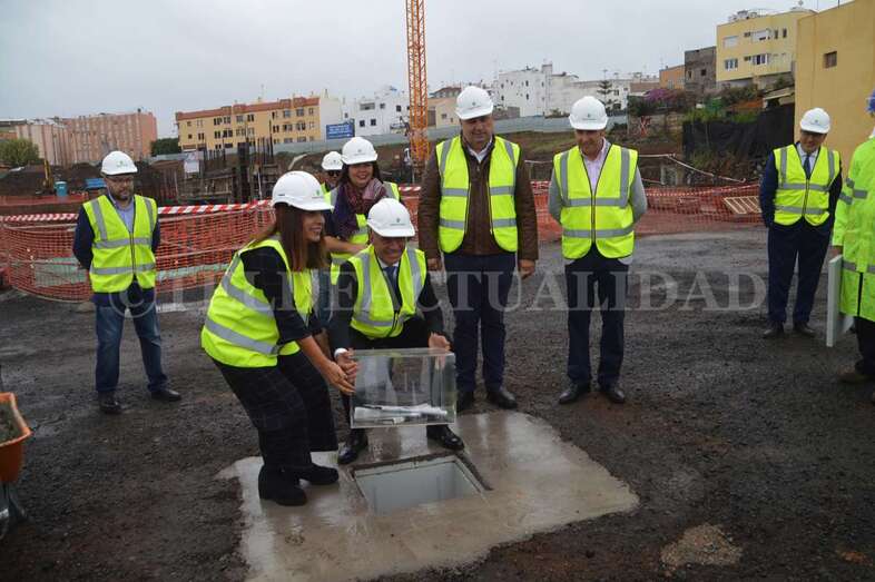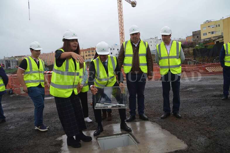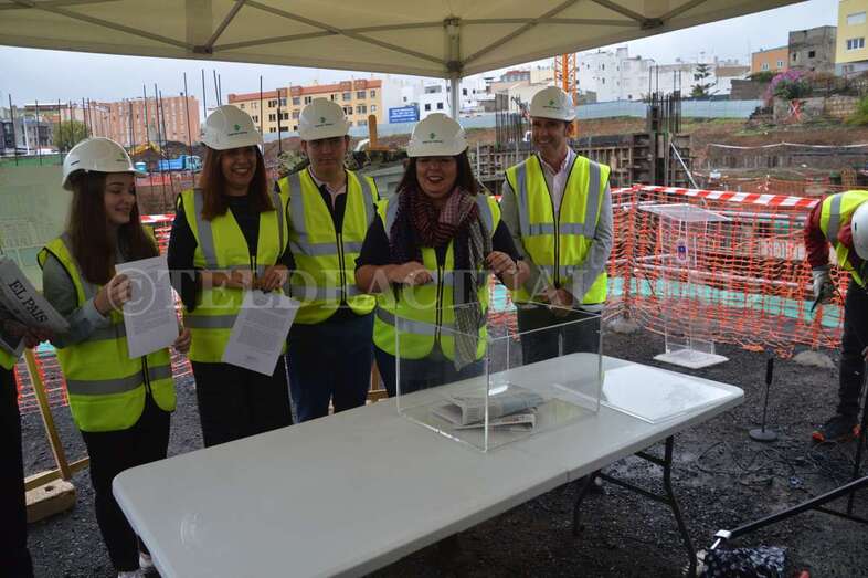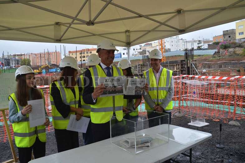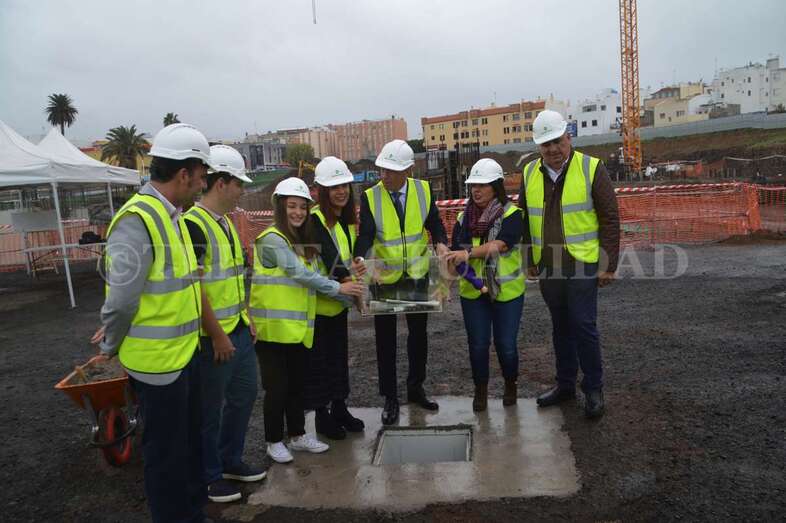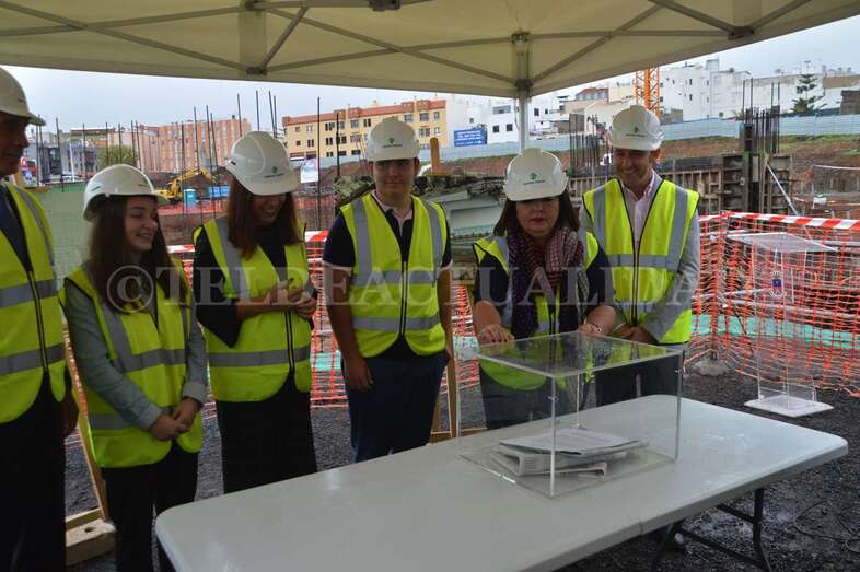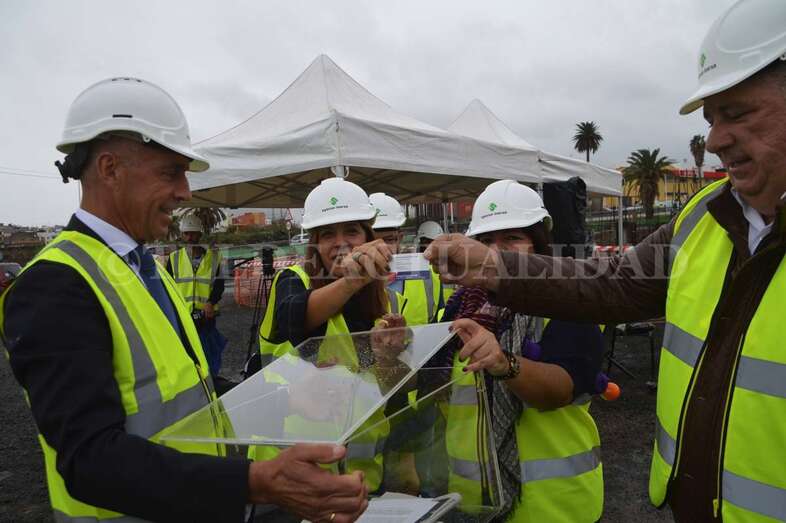 Telde.- Las máquinas llevan cerca de cuatro meses trabajando en las obras del futuro complejo deportivo, de ocio y salud de La Barranquera. Un proyecto que empieza a cobrar forma y cuyos promotores estiman que podría estar listo a finales de 2019, generando más de 400 empleos de manera directa e indirecta, la mayoría de ellos en Telde. Este lunes se procedió a colocar una simbólica cápsula del tiempo con periódicos, monedas y documentos a modo de recuerdo del inicio de estos trabajos para las generaciones futuras.