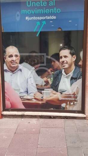 El local está siendo acondicionado y en su chaflán cuelga ya un gran cartel con fotografía de Héctor Suárez, candidato a la Alcaldía por Juntos por Telde, a quien acompañará como número el actual concejal de Festejos y Seguridad, Juan Martel, líder en Telde del CCD.