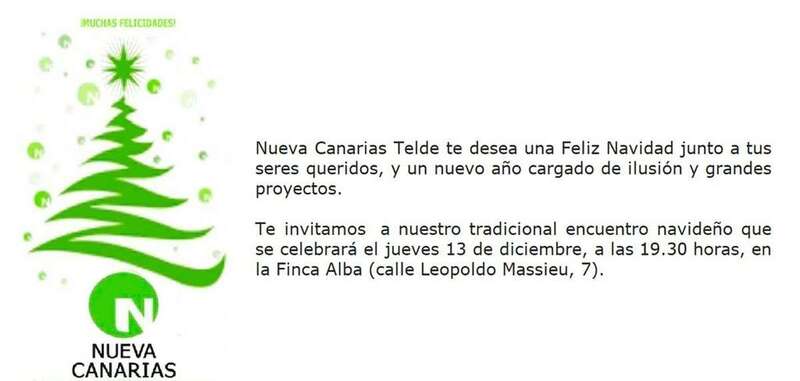 Telde.- Nueva Canarias de Telde celebrará el próximo jueves, día 13 de diciembre, su tradicional encuentro de Navidad. Una fiesta a la que la formación política invita a la sociedad teldense.