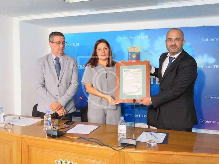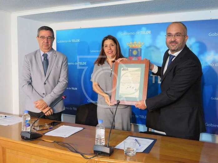 La alcaldesa, Carmen Hernández, que es además presidenta de la empresa, recogió esta certificación de manos de José Antonio Zamora, responsable de EQA España para el área de Canarias y de la zona centro de la Península en un acto que se desarrolló a media mañana en la sala de prensa de las Casas Consistoriales en presencia también del gerente de Fomentas Carmelo Ramírez.