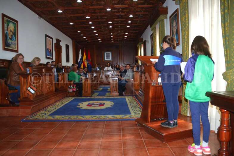 Pero ahí no quedó la cosa ya que cinco de ellos tuvieron el privilegio de intervenir en la sesión. Victoria Alejandro Pérez, Alisson Artiles Monzón, Lea Martel Peña, Sheila del Pino Peñate Ravelo y Gael Mihdi Ravelo Sancho pusieron voz al manifiesto institucional por el Día Escolar por La Paz y la No Violencia.