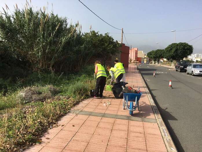 Telde.- Las mujeres contratadas a través del convenio de empleo Telde Inserta han iniciado su funciones como personal temporal del Ayuntamiento realizando una acción de limpieza de choque en el entorno del barrio de El Contrapeso y la urbanización de La Vega.