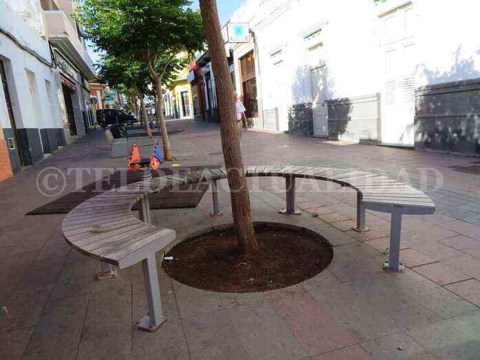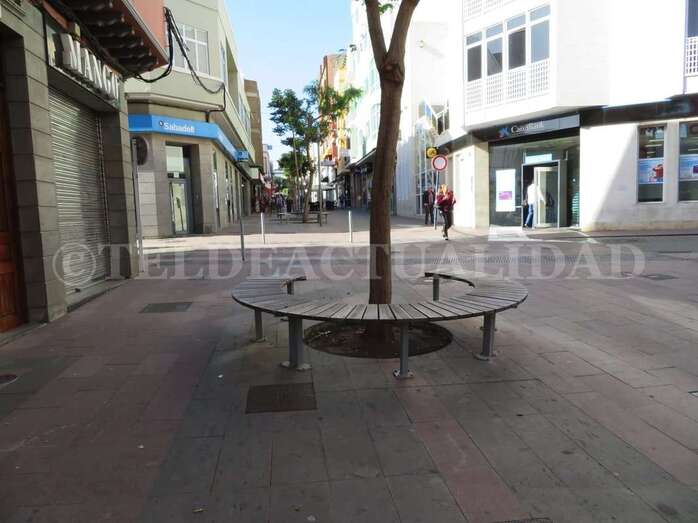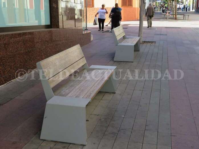 Parte de ese medio millón de euros que ahora se han pedido a la Consejería de Industria, Comercio, Artesanía que comanda la teldense Minerva Alonso (NC) se destinarán a homogeneizar los colores de los bancos, papeleras y demás elementos de esta calle, la principal del entramado peatonal del barrio de Los Llanos. No se sustituirá ninguno de ellos, sino que aprovecharán modificando sus características.