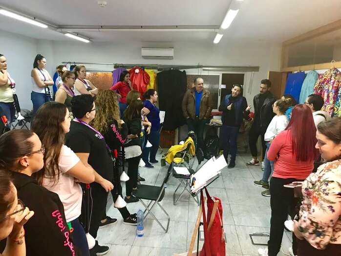 Héctor Suárez, candidato a la Alcaldía de Telde por esta alianza electoral, y su segundo, Juan Martel, representante del CCD y en la actualidad concejal de Festejos, compartieron con esta agrupación del municipio los últimos detalles de su puesta en escena de cara al concurso del Carnaval de Las Palmas de Gran Canaria.