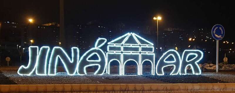 Dentro de esta actuación se contempló la colocación de este cartel de acero corten con iluminación led con el nombre del barrio y la silueta de la Noria de Jinámar, ocupando el espacio de la letra M y que representa uno de los símbolos históricos de esta zona del municipio.
