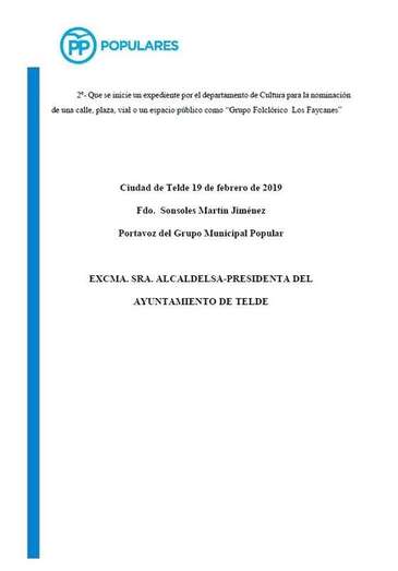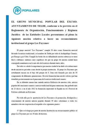 De otro lado, el Pleno hizo suya una moción del Partido Popular en la que se reconoce la aportación del grupo folclórico Los Faycanes a la promoción, divulgación y conocimiento de la música popular durante sus primeros 50 años de vida.
