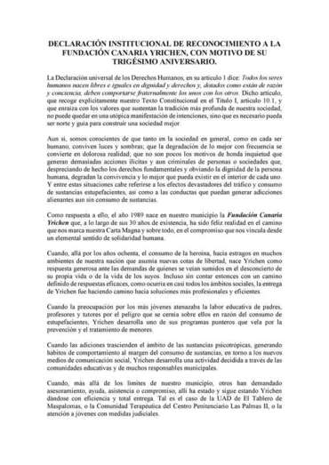 Declaración institucional de reconocimiento a Yrichen