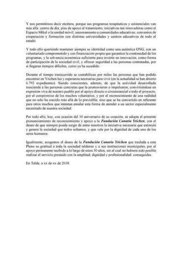 Telde.- El Pleno de Telde acordó este viernes por unanimidad sendos reconocimientos institucionales a la Fundación Canaria Yrichen por su 30 aniversario y al grupo folclórico Los Faycanes por sus bodas de oro (50 años).