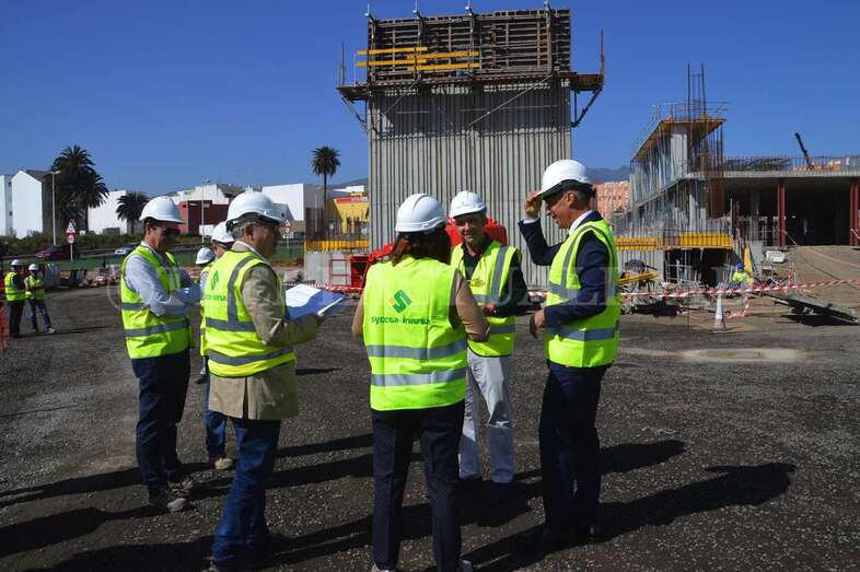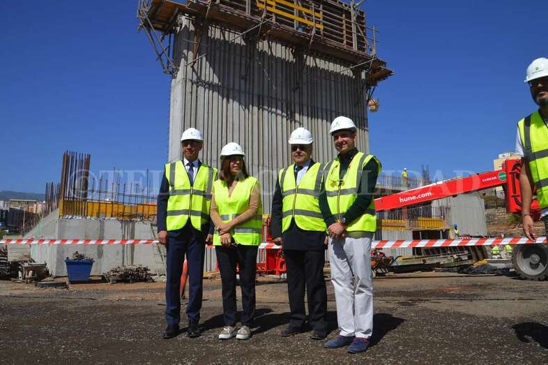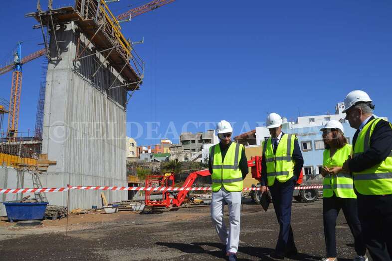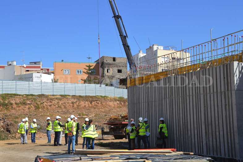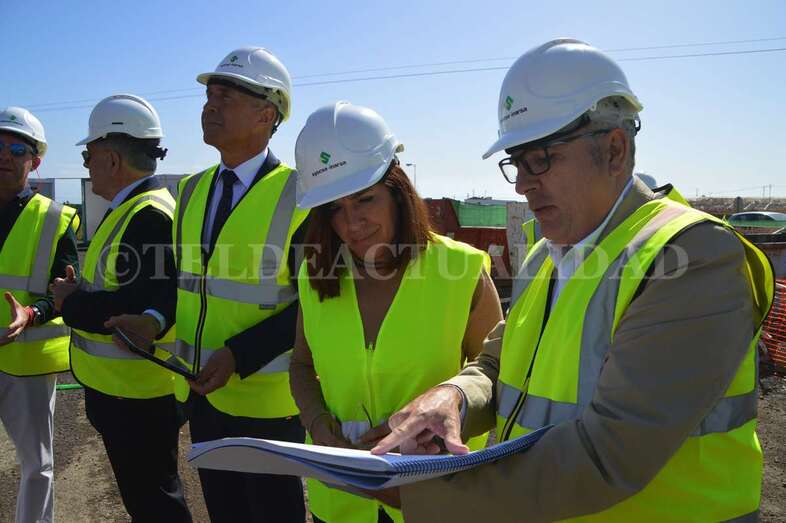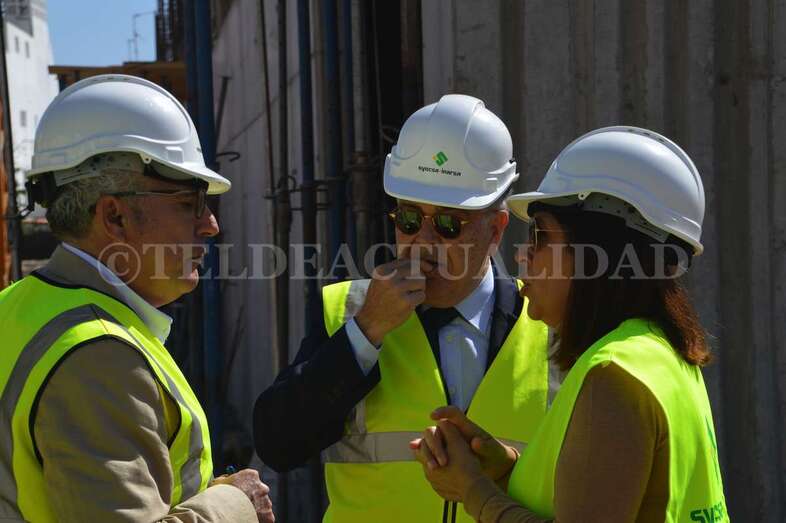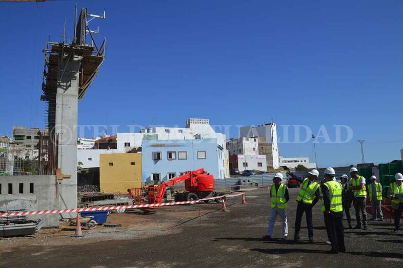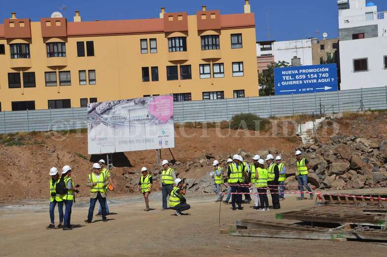 La alcaldesa Carmen Hernández visitó este viernes la zona con el concejal del Distrito Casco, el también nacionalista Eloy Santana (Nueva Canarias). Junto a Florencio de la Rosa, directivo de Syocsa-Inarsa y Francisco Recasens, responsable Nexport, ambos mandatarios pudieron comprobar in situ cómo va cogiendo forma el esqueleto de este polideportivo que se llamará Nexpor Telde y que aspira a convertirse en todo un referente de la ciudad.