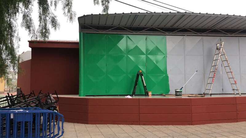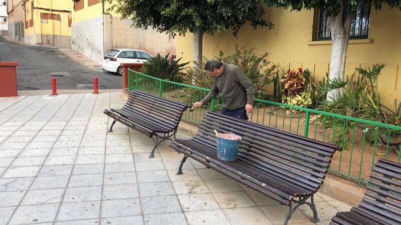 Por otro lado, el Consistorio ha pintado el interior y el exterior del escenario, la puerta frontal y los cuartos adyacentes, así como los bancos, los bolardos y los muros de la plaza.