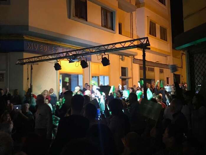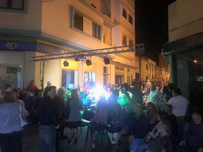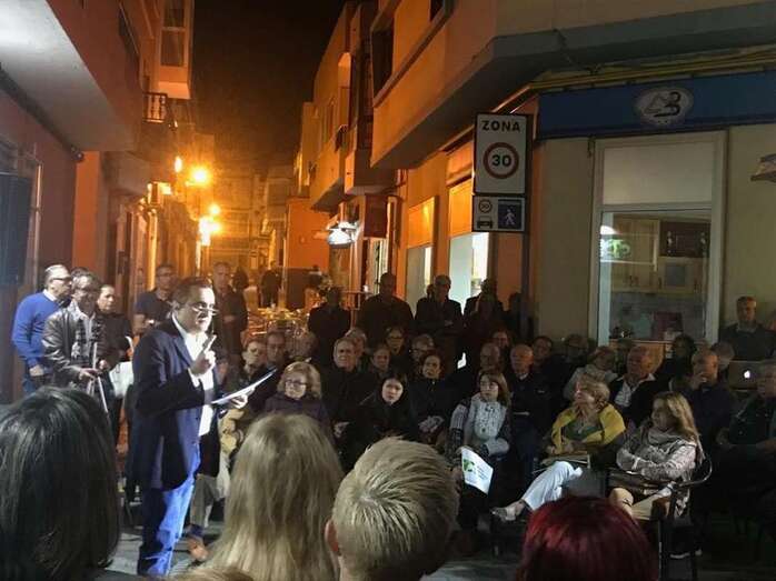 El GCC congregó a algo más de 80 personas en un mitin que se desarrolló en la esquina de las calles de Betancor Fabelo, una vía con velocidad limitada a 30 kilómetros por hora que se cerró al tráfico, y la de Diego Ramos Galván, que es peatonal.