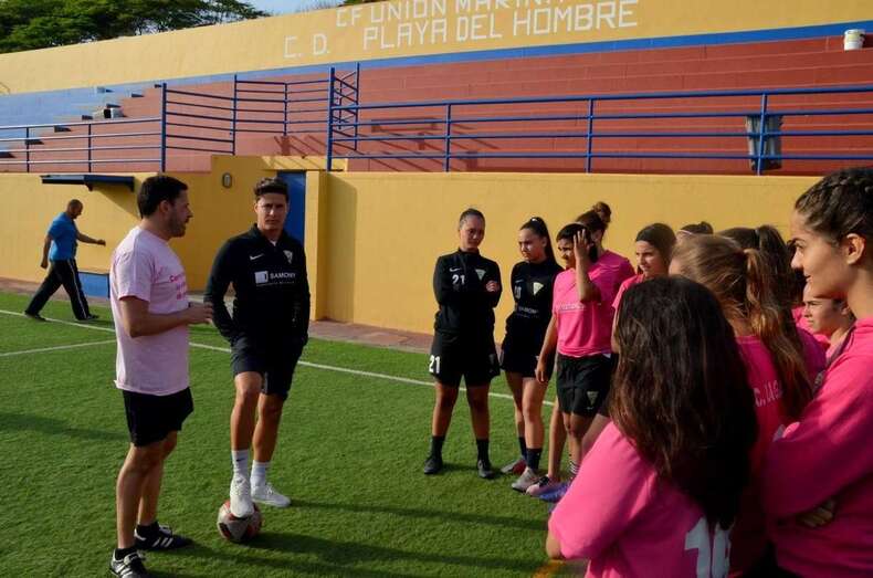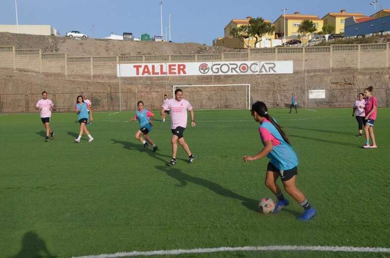 Telde.- Los candidatos de Juntos por Telde se vistieron este martes de corto para patentizar su compromiso por la igualdad en el deporte. El aspirante a la Alcaldía por esta coalición, Héctor Suárez, compartió una jornada de entrenamiento con el F.C. La Garita Féminas, donde explicó sus propuestas transversales en materia de igualdad y deportes.