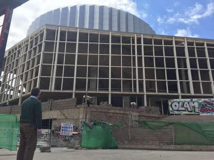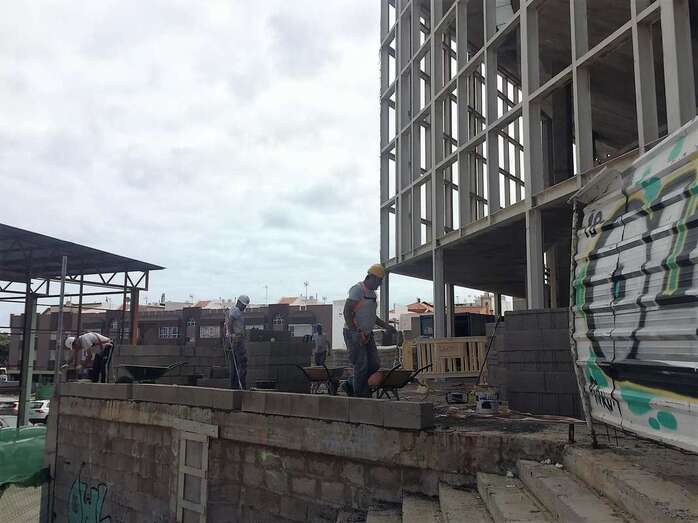 Telde.- La empresa Conypsa empezó inicó la pasada semanas los trabajos de cerramiento perimetral del inacabado Palacio de la Cultura, en la zona cero de Arnao. Unas obras en las que el Ayuntamiento de Telde invierte 85.595,13 euros y que deberán culiminar antes de dos meses.