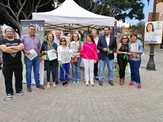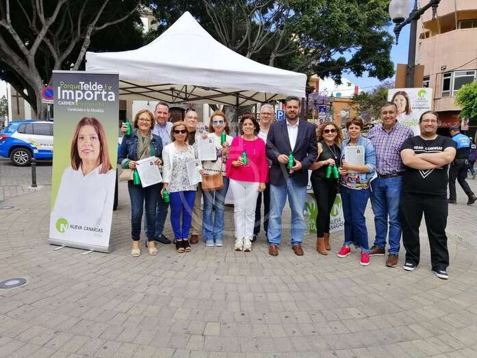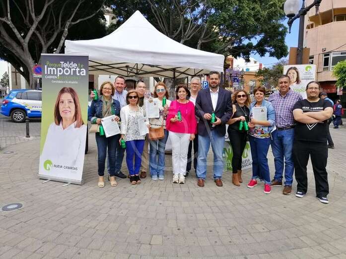 Además, los candidatos tuvieron un detalle con todos aquellos que se acercaron a la carpa informativa para interesarse por las propuestas de Nueva Canarias. En esta ocasión, se les obsequió con un pequeño bidón reutilizable de agua, para cooperar a la necesaria reducción del uso del plástico en el municipio ya que, como dice su lema, Porque Telde te importa, para los miembros de la formación nacionalista, preservar el medio ambiente de la ciudad es uno de sus objetivos irrenunciables.