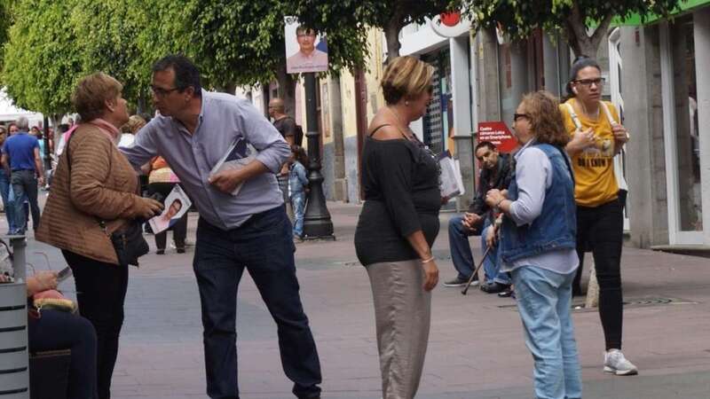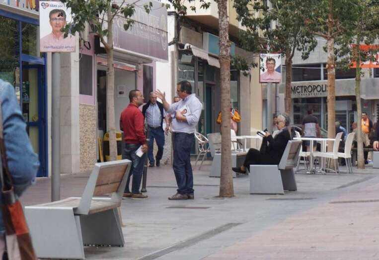 Juan Francisco Artiles, candidato a la Alcaldía, reparte un díptico informativa a una persona en Los Llanos (Foto TA) Juan Francisco Artiles, candidato a la Alcaldía, reparte un díptico informativa a una persona en Los Llanos (Foto TA)