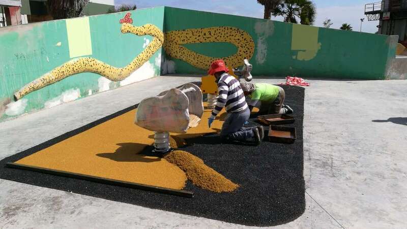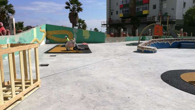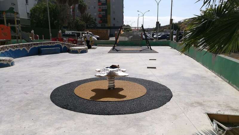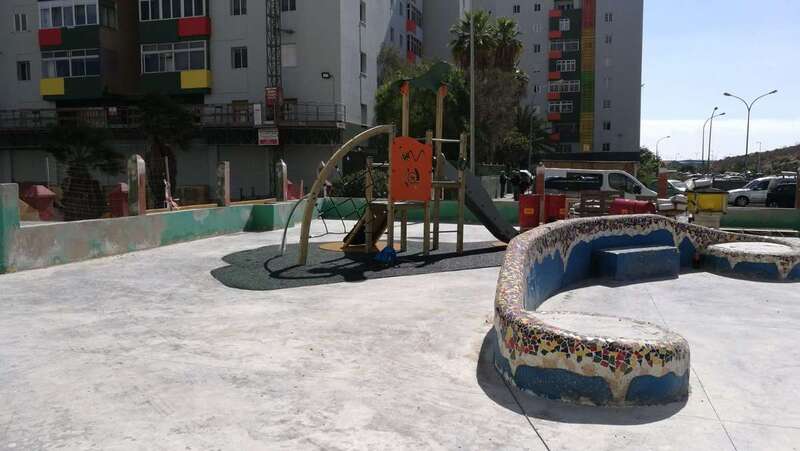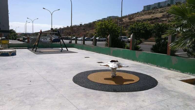 La alcaldesa de Telde, Carmen Hernández, que tiene asumidas las competencias en materia de Vivienda, explica en una nota de prensa que una vez retiradas las losetas y los elementos lúdicos en mal estado, la empresa adjudicataria ha comenzado la reposición y colocación de un pavimento que es continuo de caucho de calidad en el área de seguridad de cada uno de los nuevos juegos. Este pavimento es antideslizante, no tóxico y ecológico, reciclado y reciclable.
