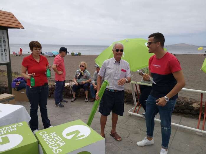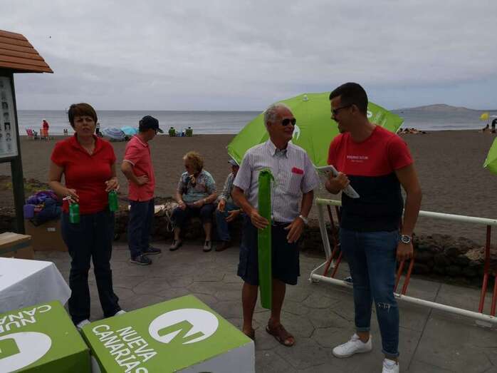 Este domingo, NC montó desde las 10 de la mañana una carpa en la avenida peatonal de Melenara, donde candidatos y militantes se acercaron a las personas que suelen a acudir a la cala más popular de Telde para disfrutar de un día de playa, almorzar en una amplia oferta gastronómica o simplemente pasear.