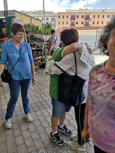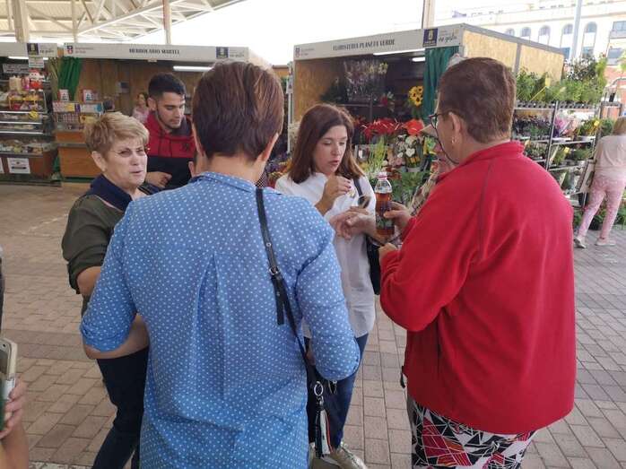 La fuerza nacionalista, con su candidata a la reelección como alcaldesa al frente, Carmen Hernández, volvió este sábado a las instalaciones de Narea que acogen provisionalmente a los puesteros del mercado municipal para difundir las propuestas electorales de su partido entre los cientos de usuarios que acuden cada día a este equipamiento municipal. Hernández lo hizo acompañada de otros miembros de su candidatura.