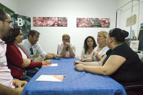 Telde.- Las dos dirigentes de Podemos de Telde, Esther González, candidata a la Alcaldía por Unidas Podemos, y Rosa Vega, se besaron este domingo en el mercadillo de Jinámar ante una carpa informativa del partido de ultraderecha Vox.